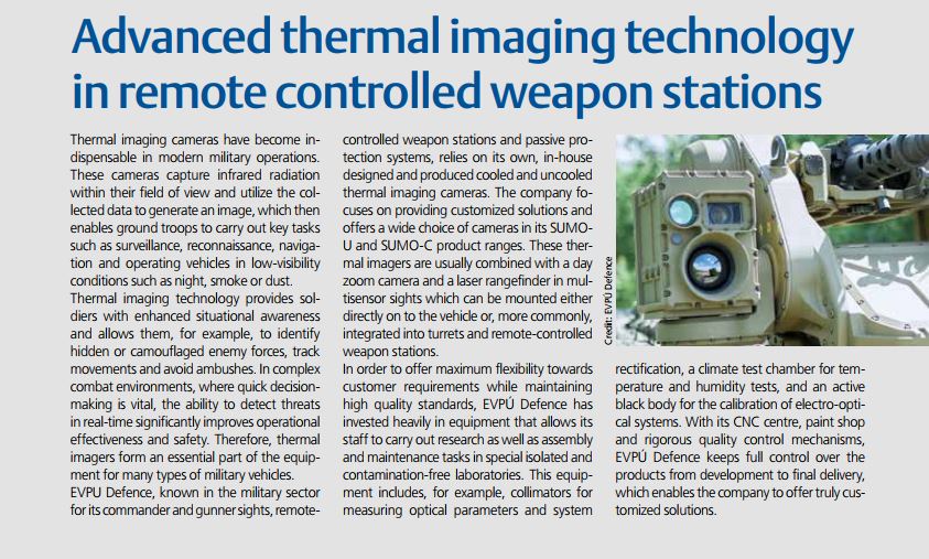 The September issue of European Security and Defence magazine focuses on EVPÚ Defence's remotely operated weapon stations in an article on advanced thermal imaging technologies.