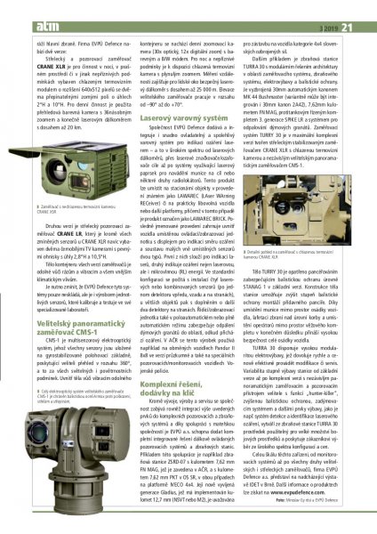 In the latest printed issue of ATM specialized magazin (Army Technical Magazine) published since 1969, another article called "EVPU Defence - a new leader in optoelectronics and its integration" about our products CRANE - Gunner Sight and CMS-1 - Command Sight was published. These special military products are primarily developed for integration into remotely controlled reconnaissance sets and weapon stations. Learn more in the attached pdf file in Czech language.
