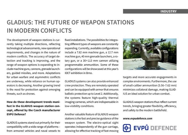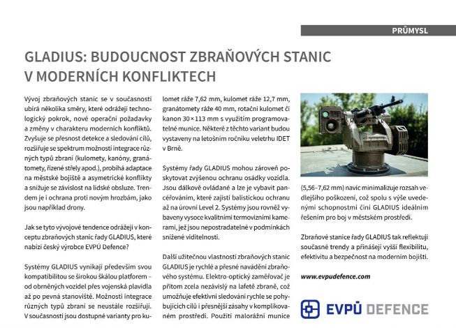 We are excited to share that the latest issue of REVIEW, a quarterly magazine for the defence and security industry, features an interesting article about the GLADIUS weapon stations. If you are interested in Czech remote-controlled weapon stations and their innovative features, this is a must-read!