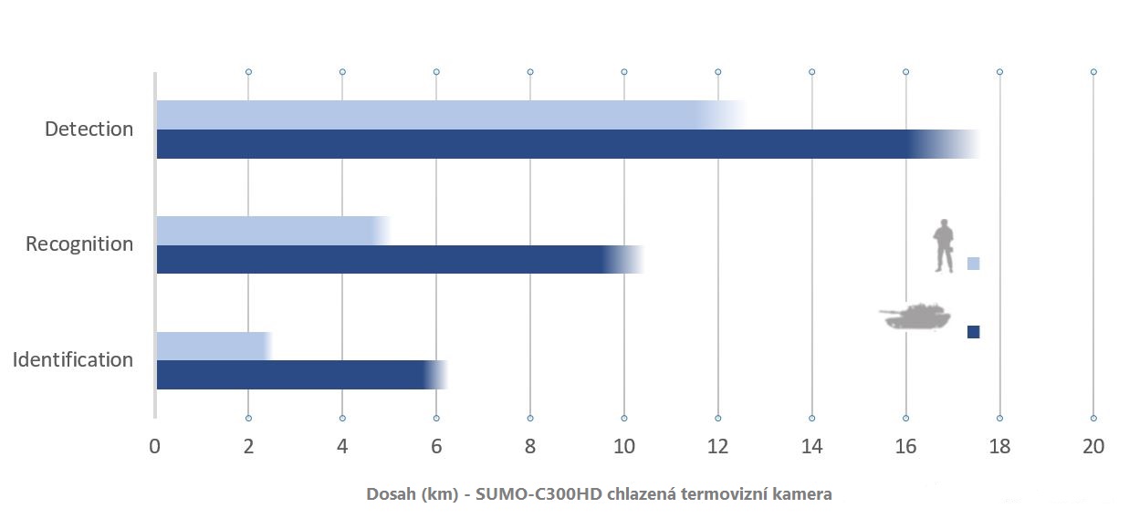SUMO-C300 (аналоговая версия) и SUMO-C300HD (версия HD) - это высокочувствительные тепловизионные камеры видеонаблюдения, предназначенные для интеграции в широкий спектр таких мультисенсорных устройств как например электрооптические системы с радаром, дневными-ночными камерами, фарами, LRF, GPS и др. Благодаря четкости изображения камеры SUMO-C300 и SUMO-C300HD позволяют обнаруживать человека на расстоянии до 9 км (SUMO-C300) или 11 км (SUMO-C300HD).